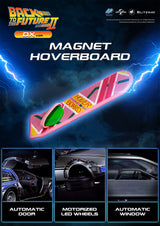 In addition to the eight key features, the DX Version of Blitzway’s Back to the Future Part II ‘Time Machine’ includes two iconic items: the swappable OUTATIME License Plate from Part I and the Hoverboard from Part II, which activates the vehicle’s magnet functions.