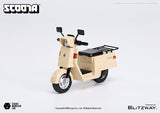 Ver 1. Monster Scooter (S): A beige scooter exuding retro vibes, fitting the monster’s blue training suit. LED lights adorn both front and rear, complementing the steering handles. Detailed working wheels and a kickstand allow for a realistic scooter experience.